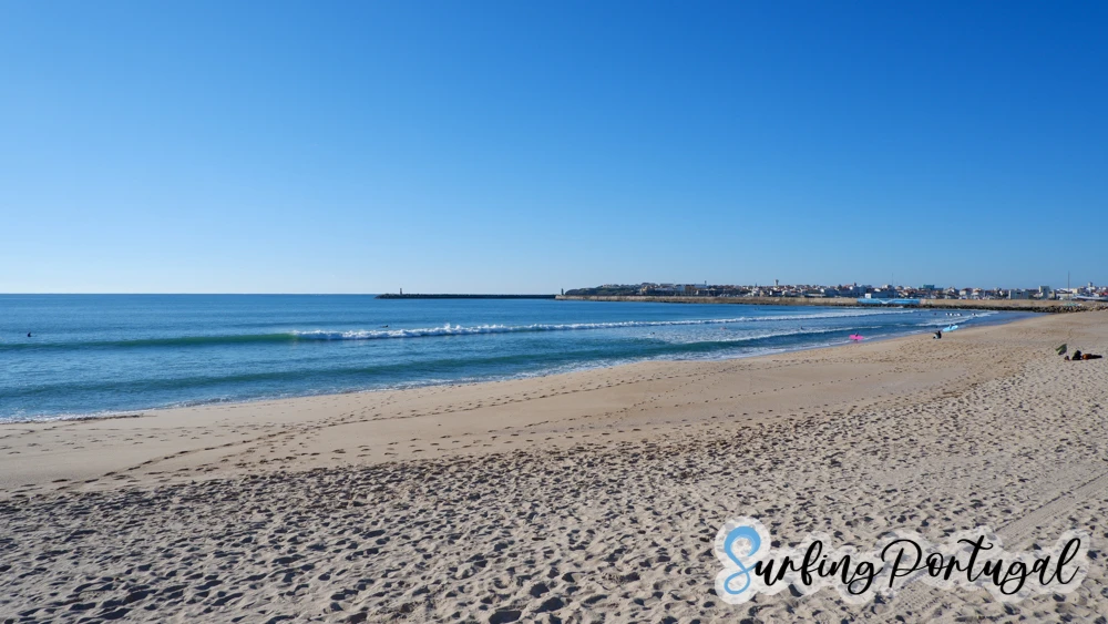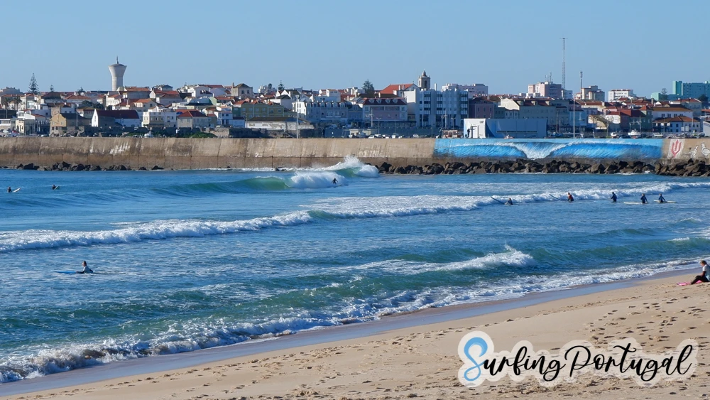 Molhe leste is a fast and powerful right wave breaking next to the wall of the Peniche fishing port. A classic image of Molhe Leste is what you can see in the pictures: waves breaking in front of the graffiti of a wave painted on a wall with the town of Peniche in the background. This image tells you that you are at Molhe Leste.